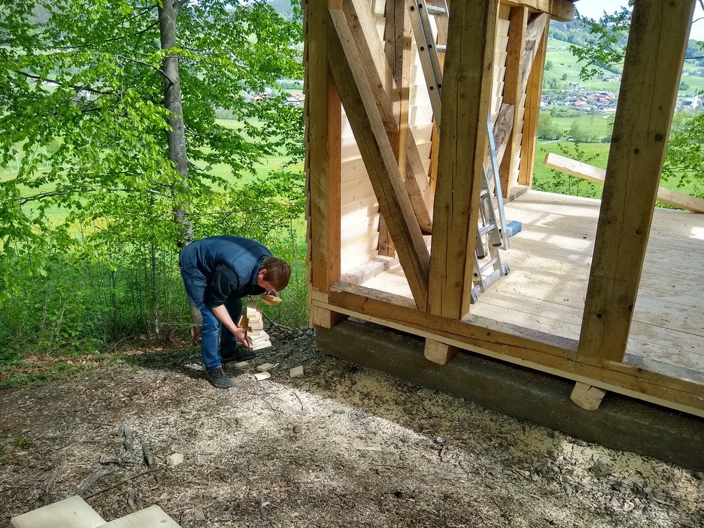 Am 1.5. 2020 wurde, mit genügend Abstand zwischen den freiwiligen Helfern, eine historische "Schulklasse im Freien" errichtet, die mit allerlei Originalen ausgestattet wird.